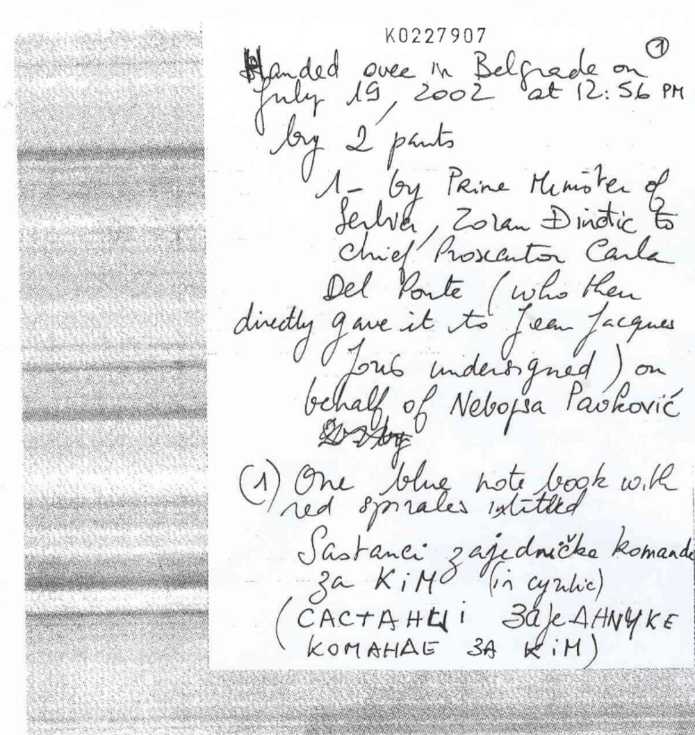 - Đinđić je tražio od Nebojše Pavkovića da mu donese ta dokumenta, pa ih je potom predao Karli del Ponte. Pribavio je on nešto i iz 1999. godine, dve sive sveske sa pregledom arhivske građe Vojske Jugoslavije iz 1999. godine, kao i Operativni ratni dnevnik isturenog komandnog mesta Treće armije 1999. godine - kazao je dr Šešelj.