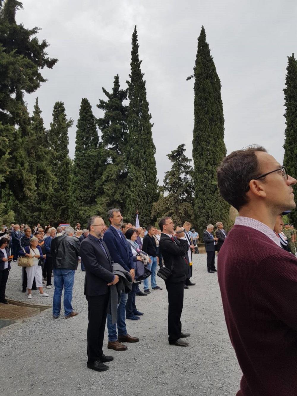 Da bismo bili dostojni potomci i naslednici bilo bi dobro da reči koje mogu da ponovo zapale barut na Balkanu zamenimo odgovornim i dostojanstvenim porukama. I tamo daleko, u Solunu, sustižu nas vesti iz sadašnjeg vremena. Nisu dobre i daju dodatni značaj mestu i događaju koji nas je okupio. Možda zajednička molitva, liturgija i parastos poginulima, kao i polaganje venaca Patrijarha Vaseljenskog Vartolomeja i Patrijarha srpskog Irineja mogu umilostiviti one koji bi da nečije očeve, braću i sinove ponovo šalju u neko novo stradalništvo. Možda će maslina koju su posadile NJihove Svetosti dostići starost u miru, a naši će potomci, prolazeći ispod njenih grana, prepričavati da smo bili prisutni kada je posađena.