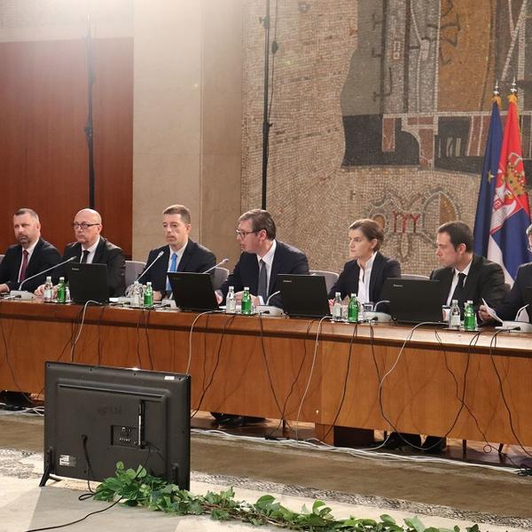 Predsednik Srbije Aleksandar Vučić prisustvovao je sednici Vlade Srbije sa predstavnicima Srba sa Kosova i Metohije, koja je održana u Palati Srbija.