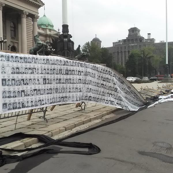 - Krenuo sam na pripreme za obeležavanje stogodišnjice oslobođenja Beograda i krenuo sam ovde pored Skupštine do vešeraja tamo da perem neke majice i onda vidim iz daljine nema onaj natpis. Priđem ovde i pitam je li moguće da je neko to ponovo pogurao. Policajci kažu da je bio jak vetar. Ja ne verujem da je toliko jak bio vetar. Vidim da su ovi natpisi Hilari end Bil Klinton - zločinom oteli Kosovo oboreni, verevatno sad kako dolaze stranci, nekome nisu odgovarali ovi natpisi ove poruke ovde istaknute, pa mogu da je to neko srušio. Ja ću to ponovo podići. Jednostavno ja sam možda od boga određen da se mučim ceo život i da tražim pravdu za te mučenike. Neka nam država da spomenik od Koševa do Horgoša i mi se odmah povlačimo - objasnio je Spasić.