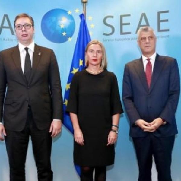 Dok je Vučić objašnjavao novinarima epilog dijaloga sa Tačijem, u jednom trenutku su ga Albanci verbalno napali sa prozora jedne zgrade u Briselu.
