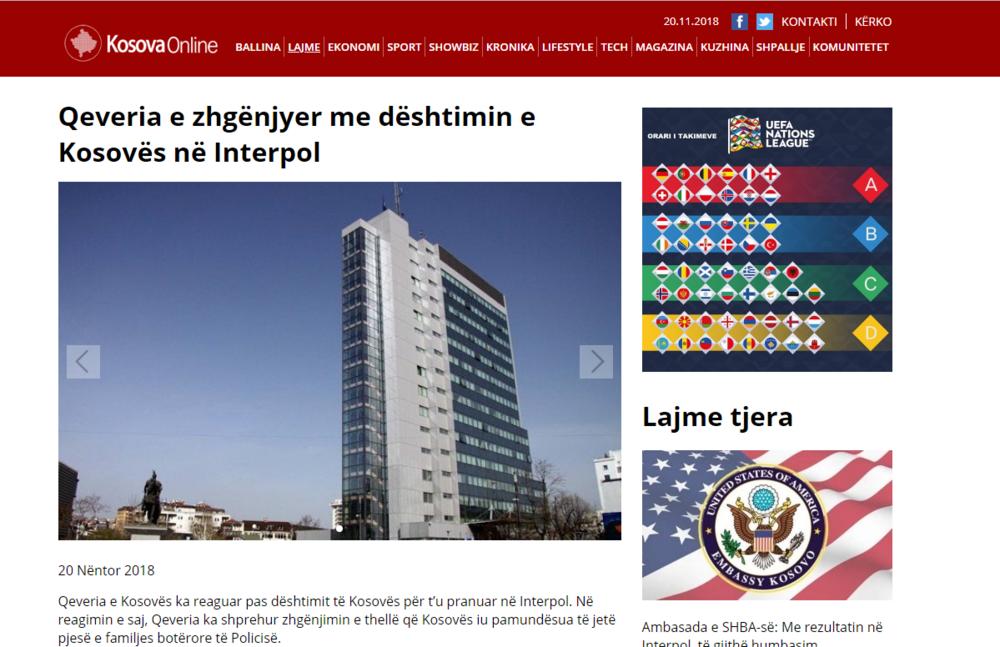 Zatim, "Vlada Kosova razočarana je time što Kosovo nije ušlo u INTERPOL."