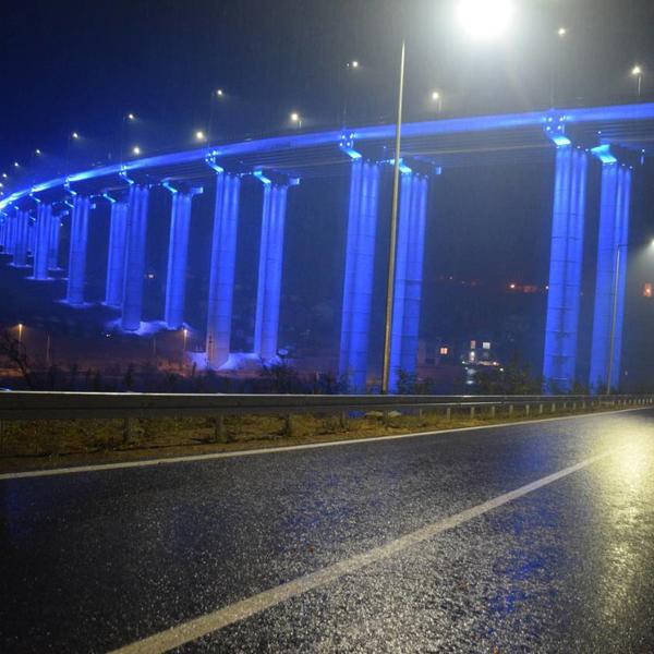 Najviši most na Koridoru 10, Vrla kod Vladičinog Hana, sinoć je osvetljen plavom bojom. Na ovaj način su se Ministarstvo građevinarstva, saobraćaja i infrastrukture koje vodi Zorana Mihajlović i "Koridori Srbije" priključili akciji obeležavanja Svetskog dana deteta - 20. novembra, čija je ovogodišnja tema “Obojimo sve u plavo, za svako dete”.