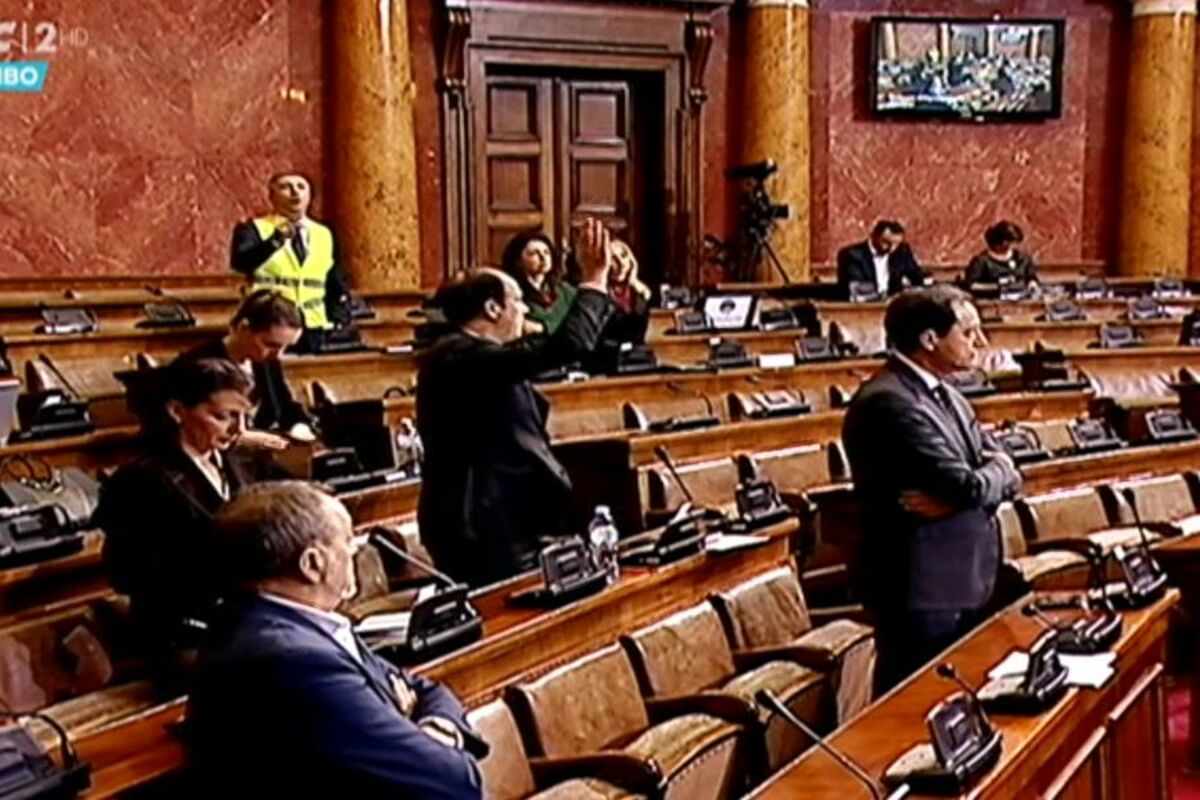 Poslanici opozicije i danas su ustali na sednici Skupštine Srbije čime izražavaju nezadovoljstvo načinom vođenja sednice.