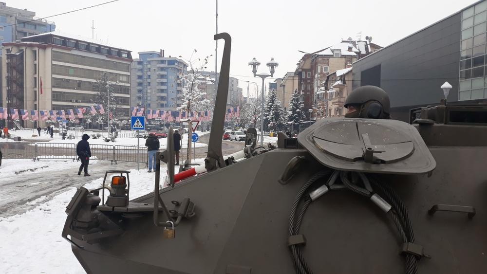 Na mostu koji deli severni i južni deo Kosovske Mitrovice uoči današnjeg izjašnjavanja o formiranju vojske Kosova u Prištini, stacionirano je više vozila Kfora.