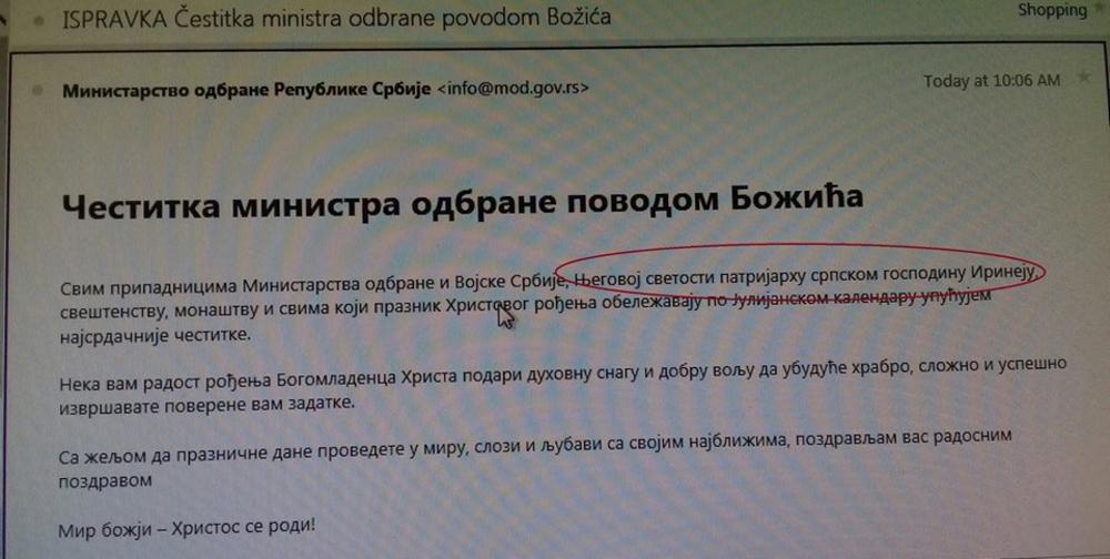 PA DA LI JE OVO MOGUĆE?! Ministar odbrane greškom čestitao Božić preminulom PATRIJARHU PAVLU! (FOTO)