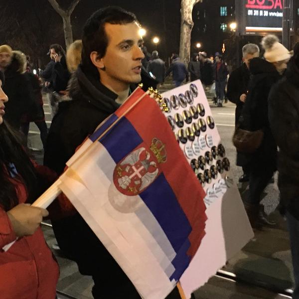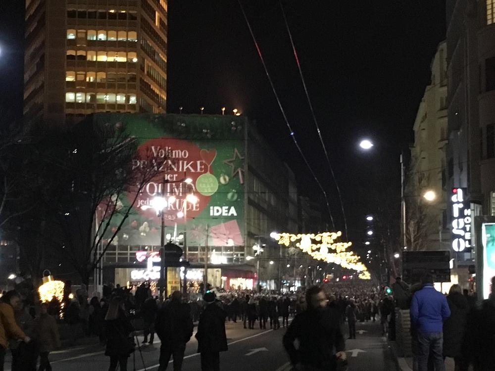 19.45. Građani su zapalili sveće ispred Hrama Svetog Save čime je protestna šetnja završena. U pozadini se čuje pesma "Vostani Serbije" koju je napisao Dositej Obradović.