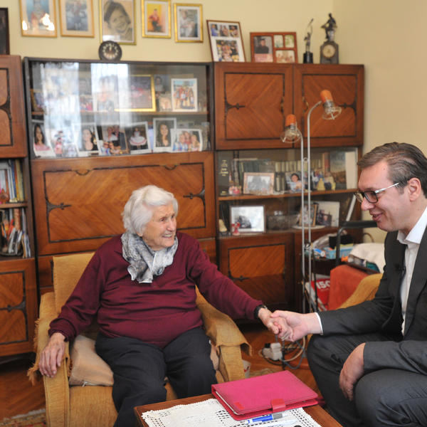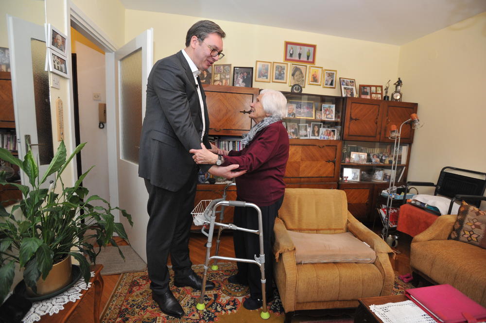 Predsednik Aleksandar Vučić posetio je danas najstariju Srpkinju, 107-godišnju Nadeždu Pavlović, u njenom domu na Vračaru, nakon što je do njega došao glas da želi da ga upozna. Gospođa Nadežda, učiteljica u penziji, živi sama.