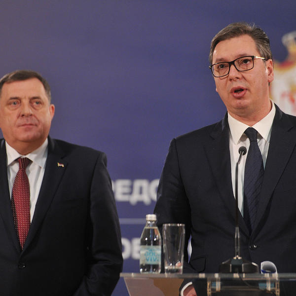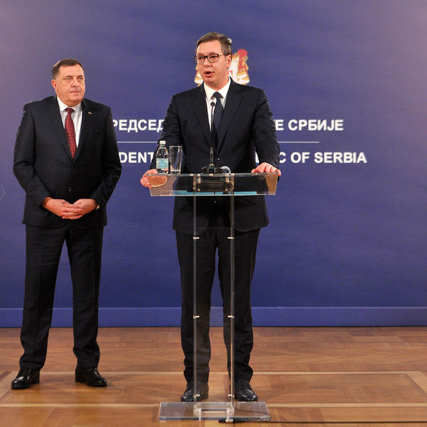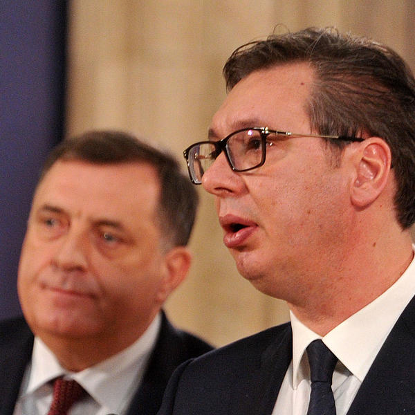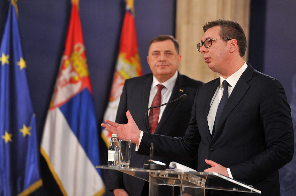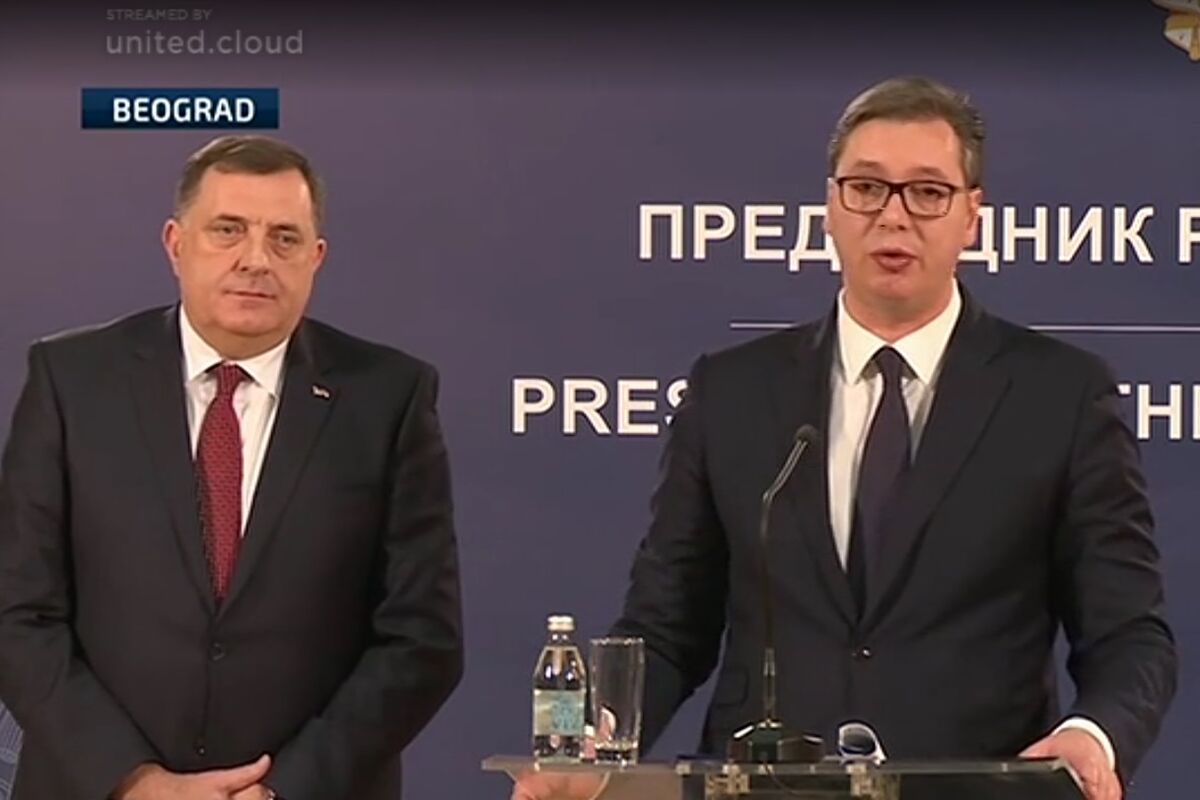 Predsednik Srbije Aleksandar Vučić i srpski član Predsedništva BiH Milorad Dodik obratili su se javnosti nakon sastanka na Andrićevom vencu.