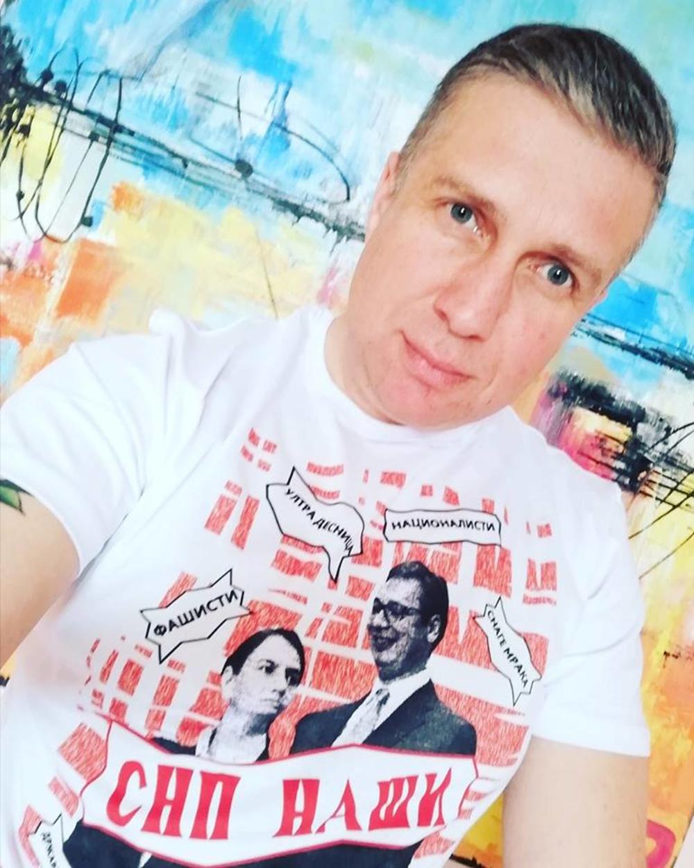 U ovakvoj majici sliku je na Fejsbuk postavio i sam predsednik ove organizacije Ivan Ivanović koji je poznat po pravljenju spiskova srbomrzaca.