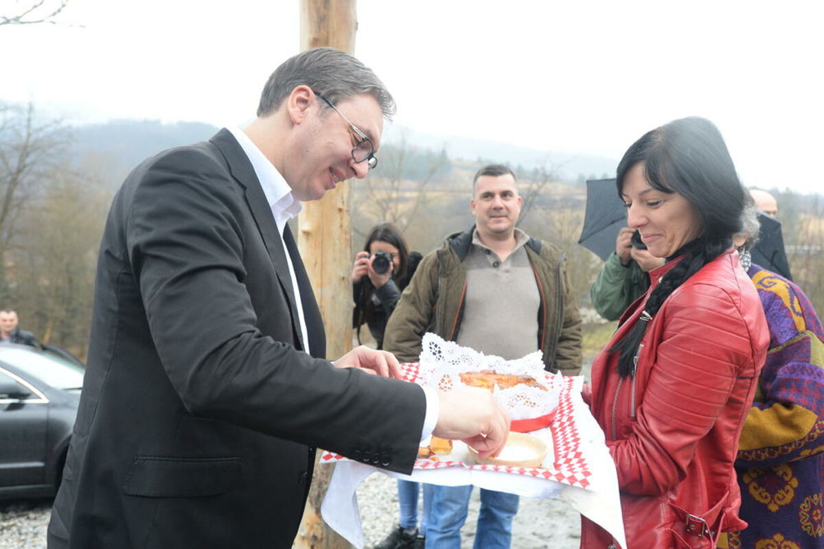 Za Vučića je bilo pripremljeno posluženje - specijaliteti kuće - gibanica, slane kiflice, domaće suvo meso, slanina, proja, pohovane palačinke...