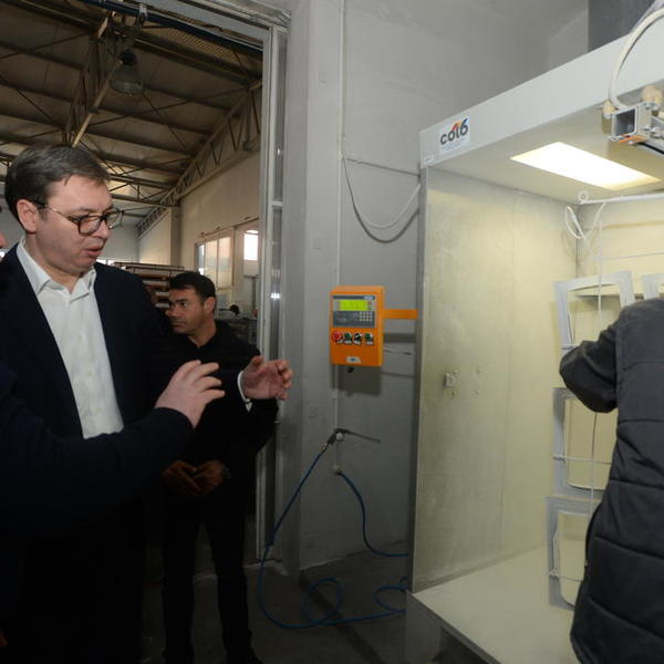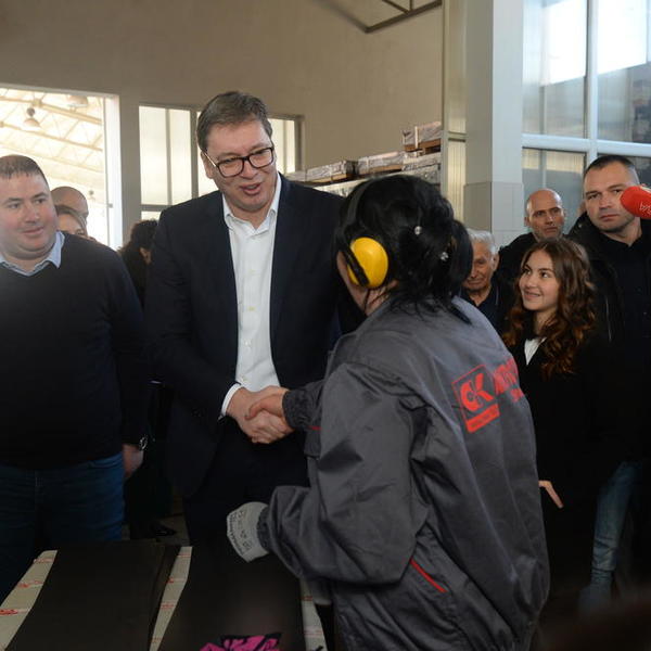 Vučić je obišao danas u Trsteniku i fabriku "PPT Petoletka doo"- Hidraulika, koju su osnovali radnici, nakon stečaja privrednih društava nekadašnjeg giganta "Prve petoletke" iz tog mesta.