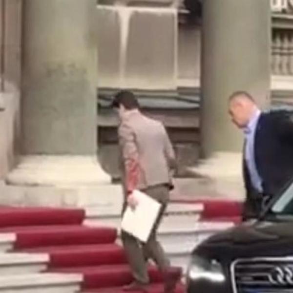 Predsednik Udruženja kidnapovanih i ubijenih na KiM Simo Spasić, nadomak Predsedništva, transparentom pozvao je srpske vlasti na zaustavljanje dijaloga s "vođama OVK".