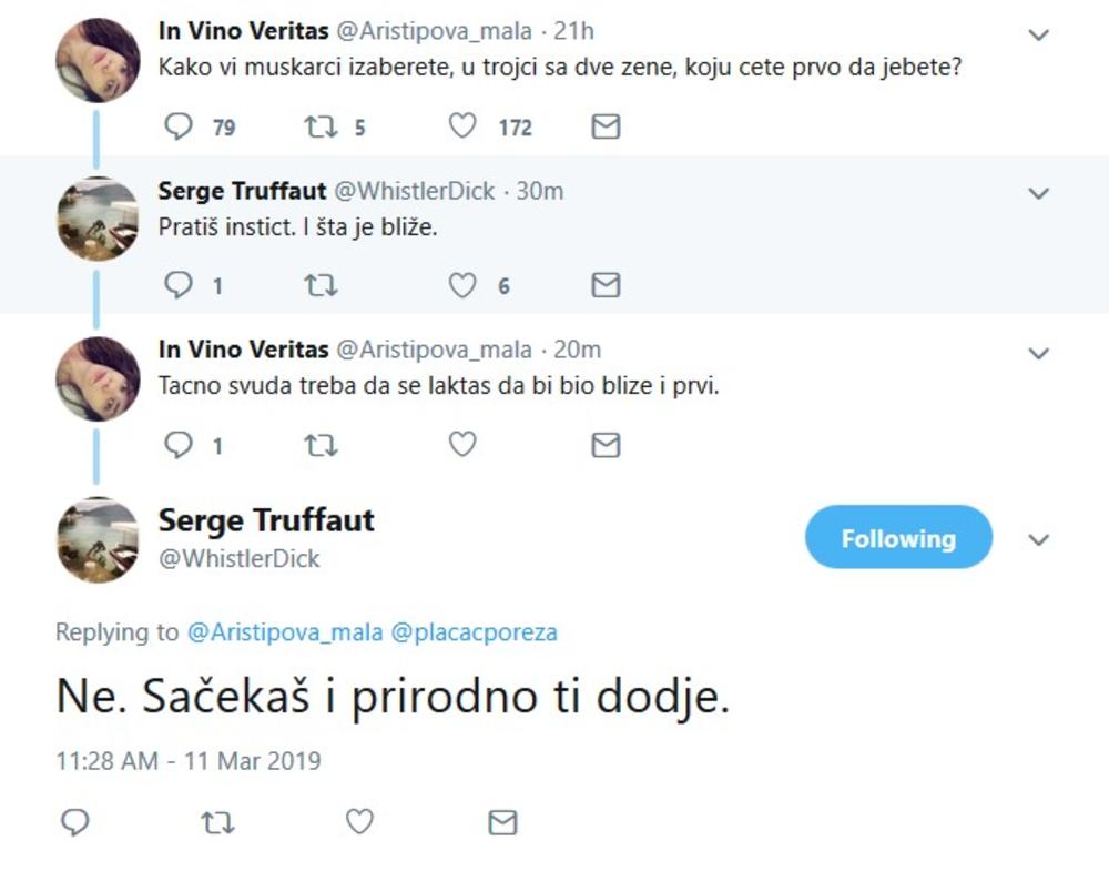 Tako se, maltene ničim izazvan, upustio u trojku na Tviteru, tačnije u debatu koja je za osnovu imala prilično vulgarnu postavku.