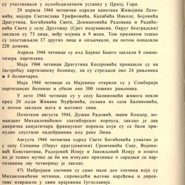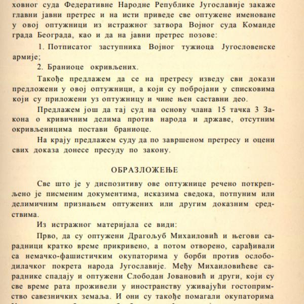 Ovo je samo deo originalnog teksta optužnice i to samo onaj koji se odnosi na dokazane zločine četničkog vođe Draže Mihailovića: