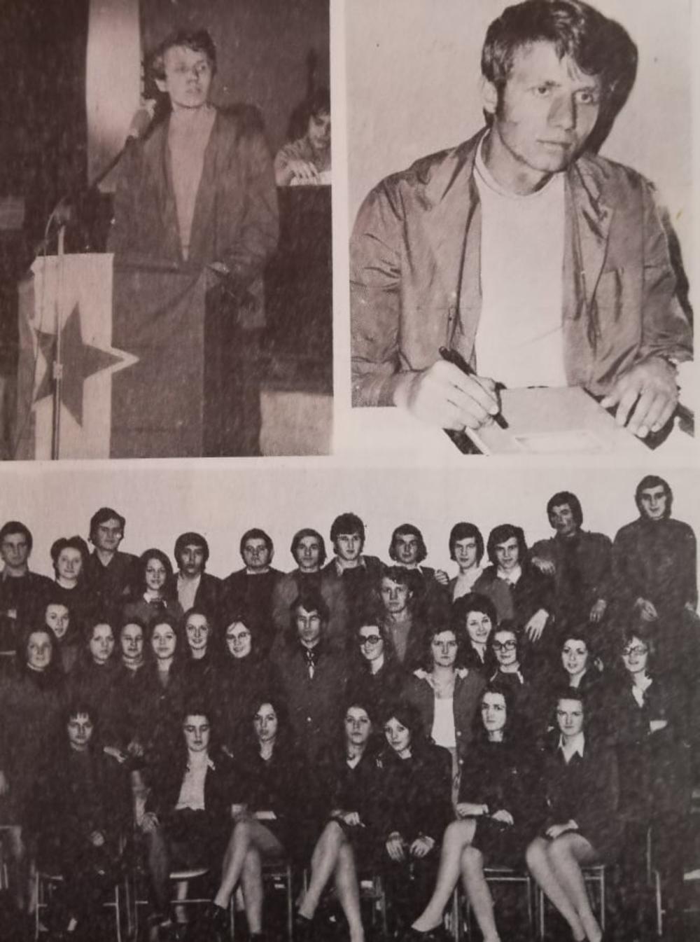 Na drugoj, mladi Šešelj drži govor, sa govornice na kojoj je okačena zastava SFRJ, a tu je i fotografija lidera radikala nastala tokom učestvovanja u radnoj akciji.