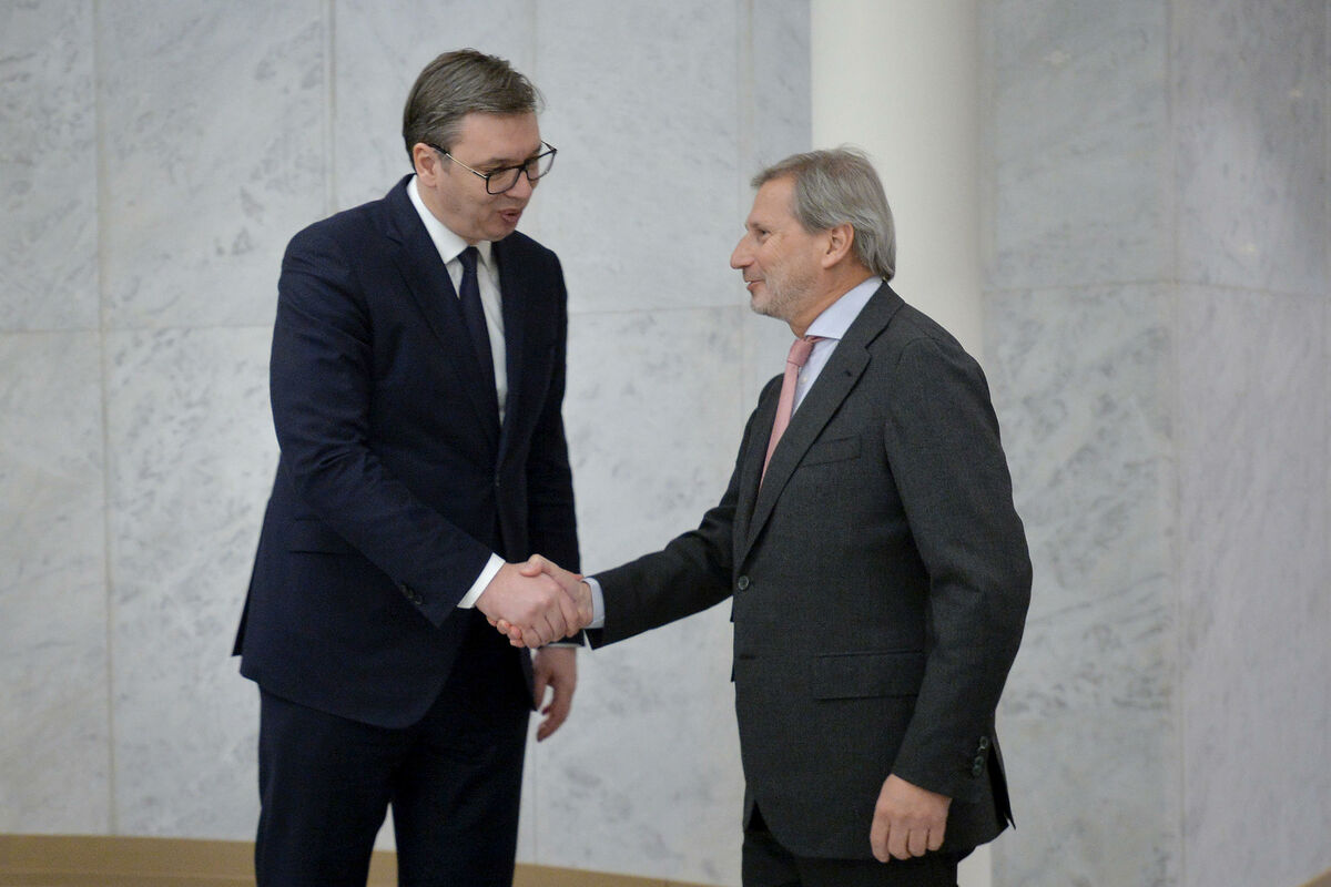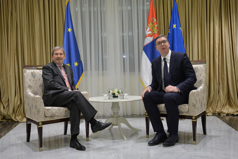 Predsednik Srbije Aleksandar Vučić sastao se u vili "Mir" sa komesarom EU za proširenje Johanesom Hanom.