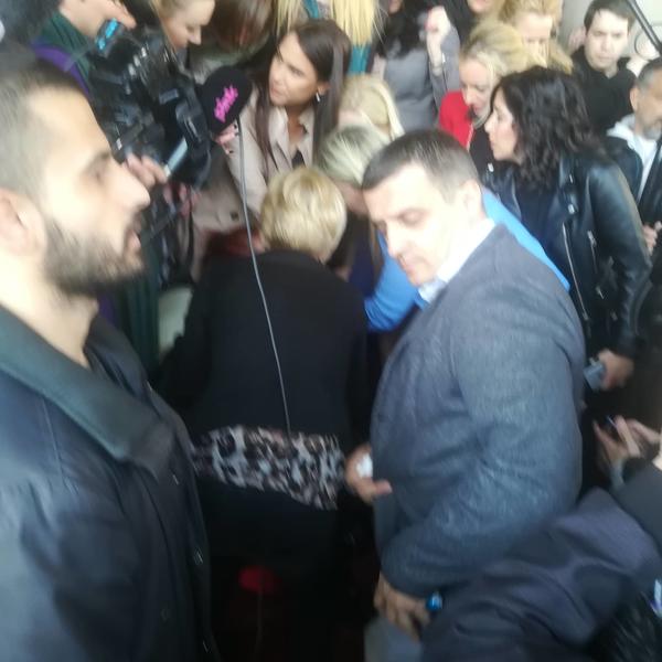 Ona se onesvestila, a oko nje su se okupile koleginice koje su pokušale da joj pomognu, dok ne stigne Hitna pomoć.