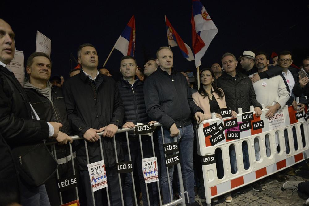 Potom je učestvovao i u sramnom skandiranju i vređanju predsednika Srbije, Aleksandra Vučića, stojeći u prvom redu sa liderima Saveza za Srbiju.