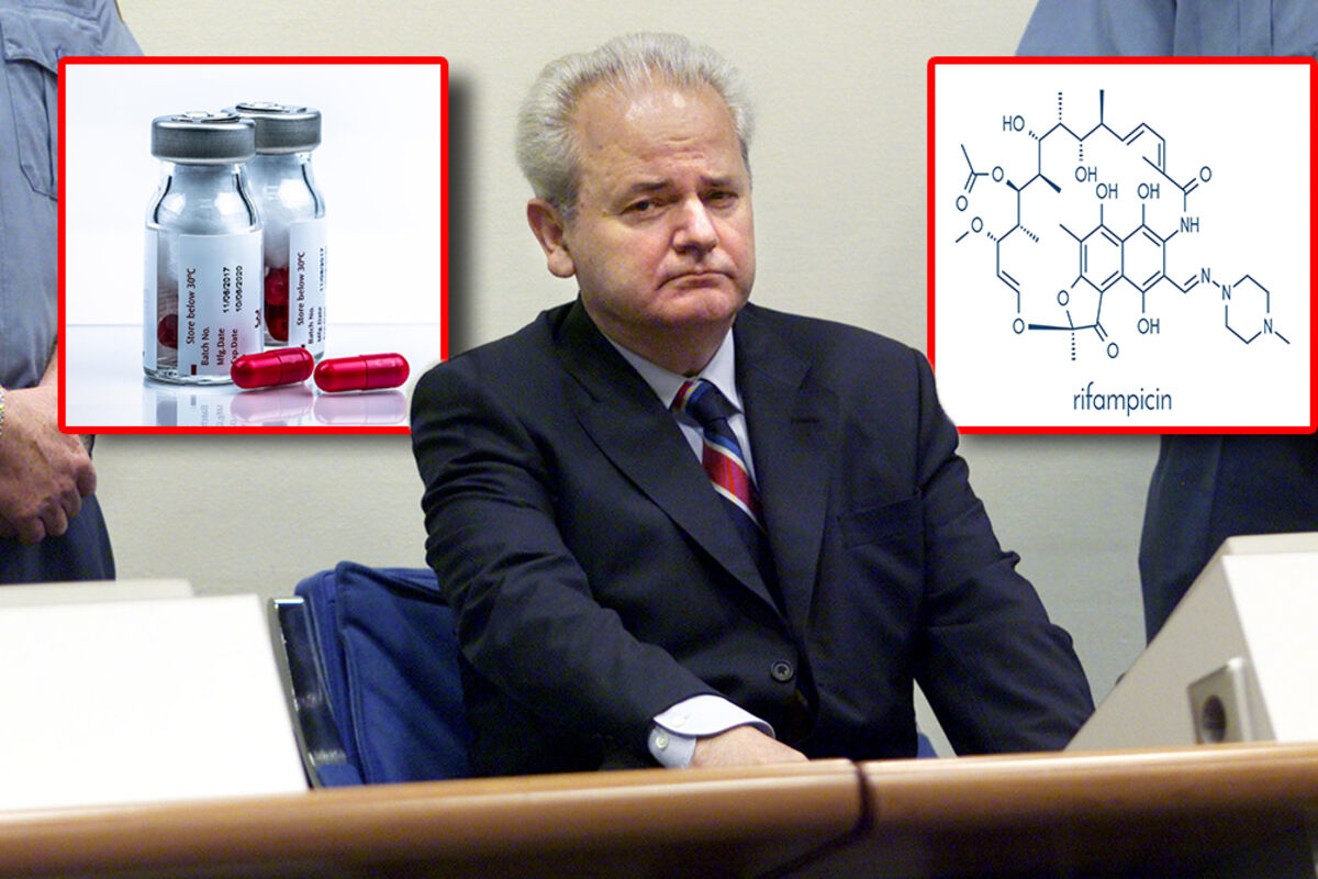 "Slobodan Milošević je umro od infarkta u svojoj ćeliji u pritvoru tokom suđenja, a zatvorskie vlasti posle smrti tvrdile su da je Milošević duže vremena uzimao „rifampicin“, antibiotik koji se koristi pri lečenju lepre".
