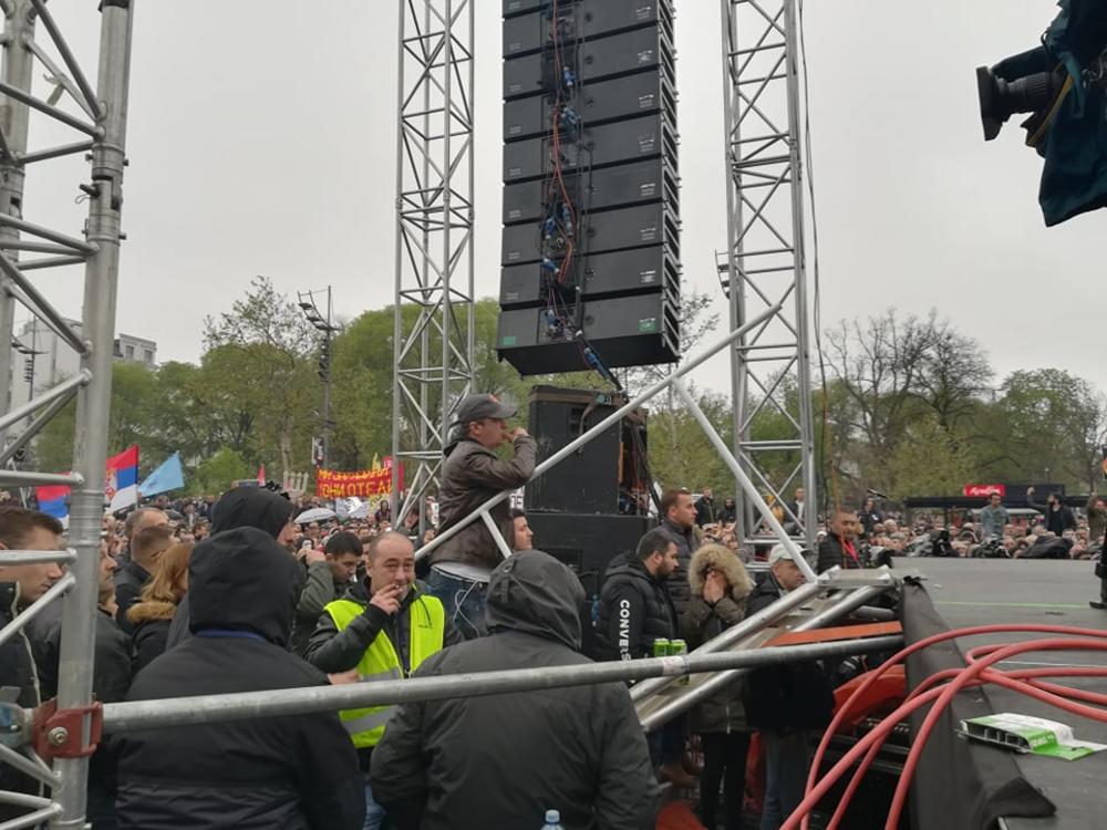 15: 00 - Oni su se sa transparentima i zviždući u pištaljke okupili ispred zgrade Narodne skupštine Srbije, gde je postavljena i bina.
