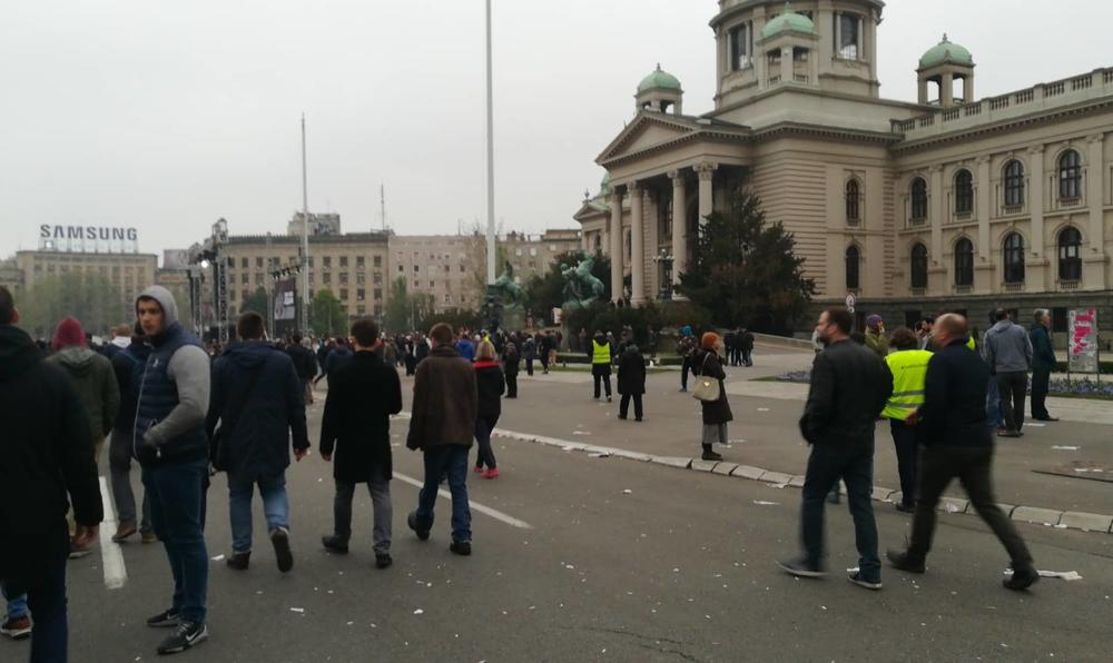 18: 30 - Protestna šetnja je završena, a demonstranti su ponovo ispred Skupštine u znatno manjem broju