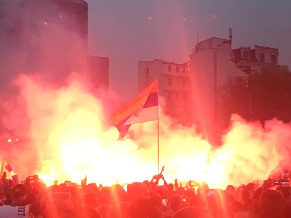 15: 25 - Na protestu se čuje himna "Bože pravde". Kako javljaju naši reporteri, himnu su pevali i Đilas i Boško