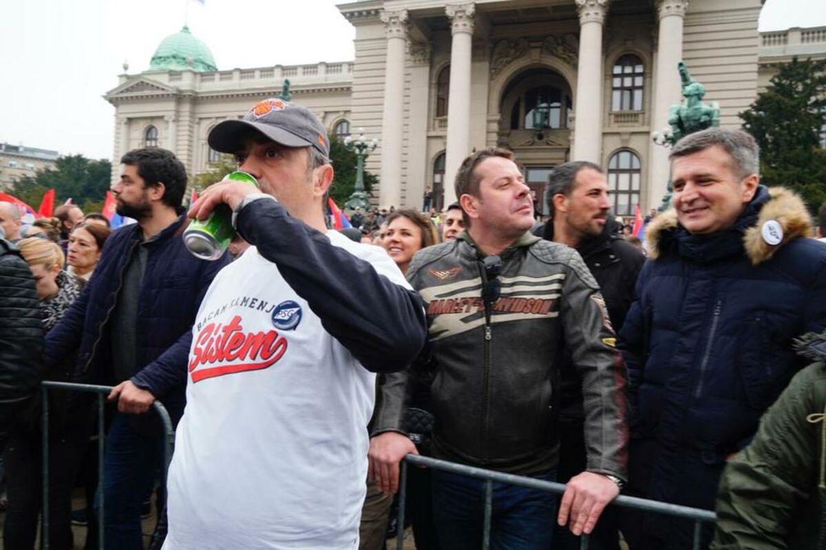 Lider Pokreta slobodnih građana (PSG) Sergej Trifunović tokom skupa ispred Narodne skupštine se nije obazirao na prisutne pa je potegao pivo iz limenke.