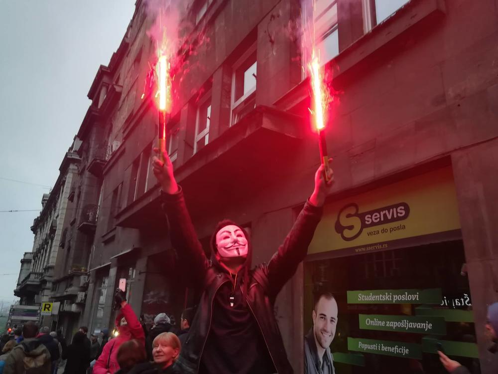 17:35 - Pojedini demonstranti sa maskama na licu pale i baklje