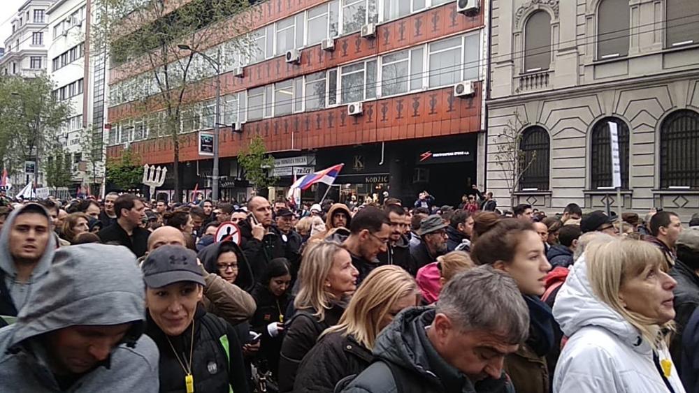 17: 57 - Demonstranti stižu do Slavije, a jedan mali deo njih ostao je kod Skupštine