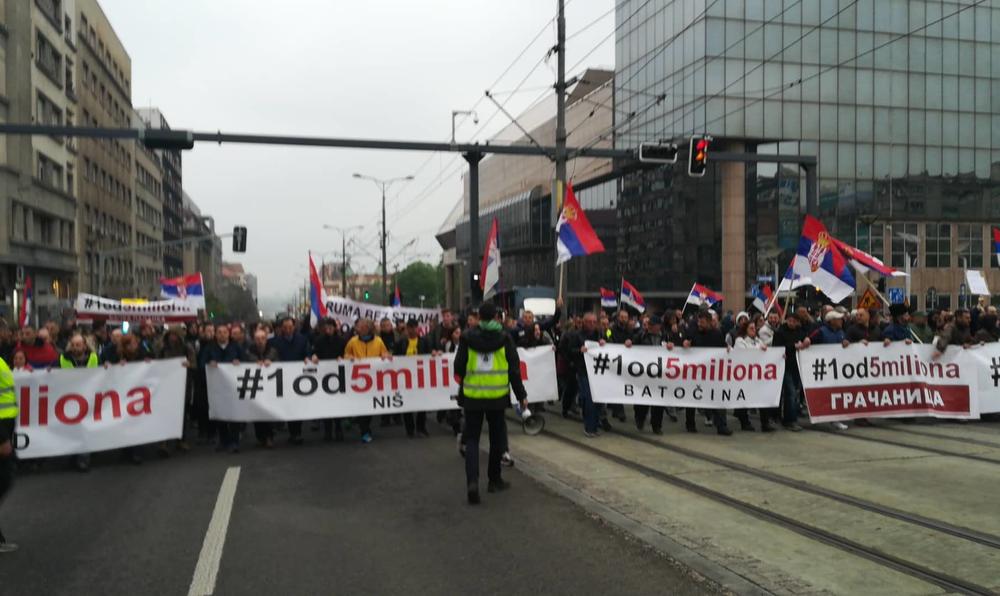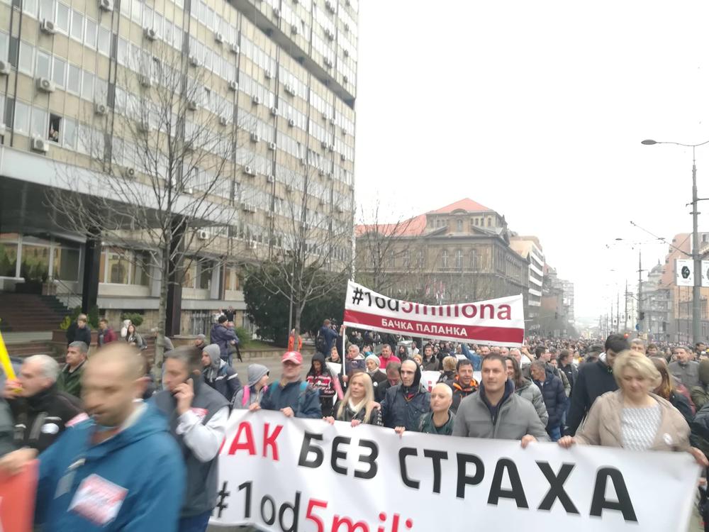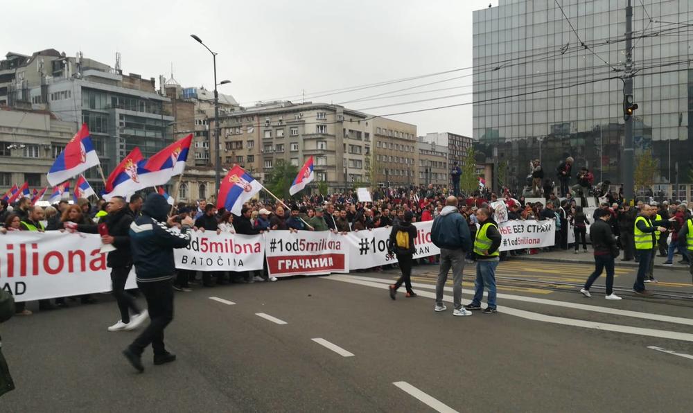 Protest "1 od 5 miliona" bio je zakazan za 15 časova, a okupljeni su 17:30 časova sve vreme bili ispred Skupštine.