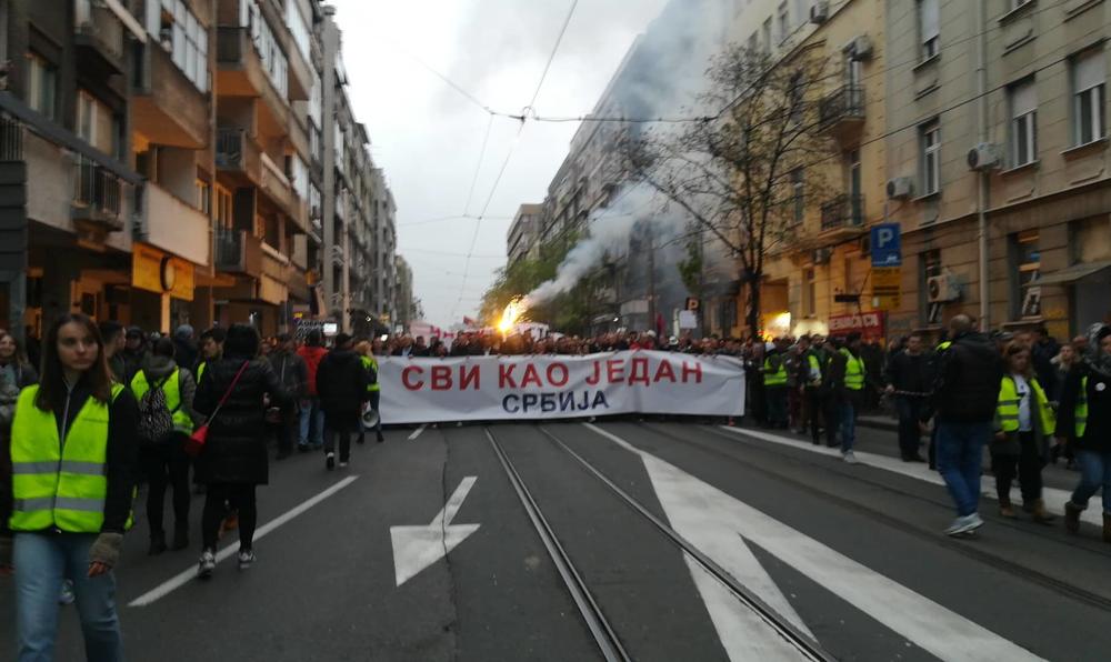 17: 40 - Sve se dimi, baklje gore na više lokacija, a kolona je sad kod Vlade Srbije