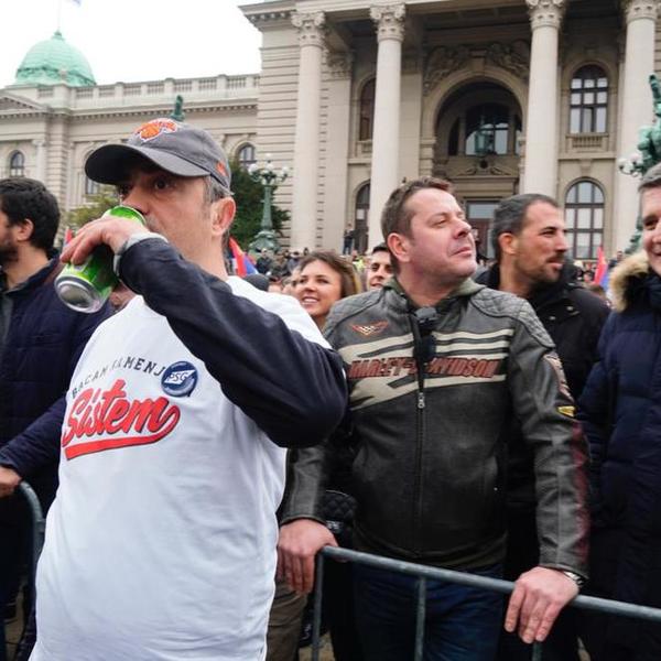 Na protestu ispred Skupštine Srbije koji predvode Dragan Đilas, Boško Obradović i Vuk Jeremić.