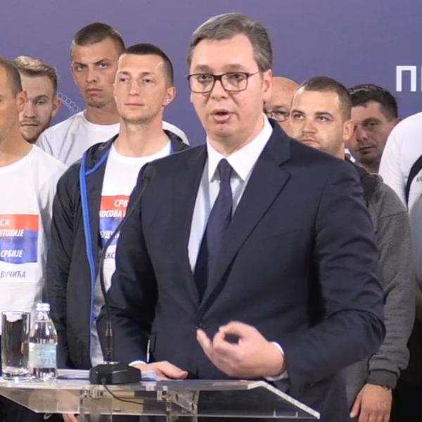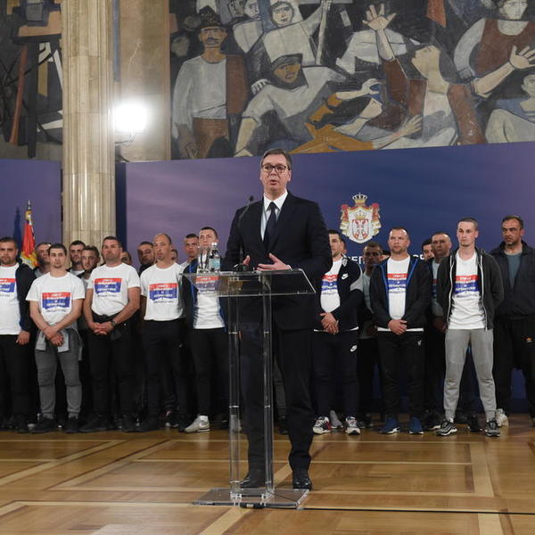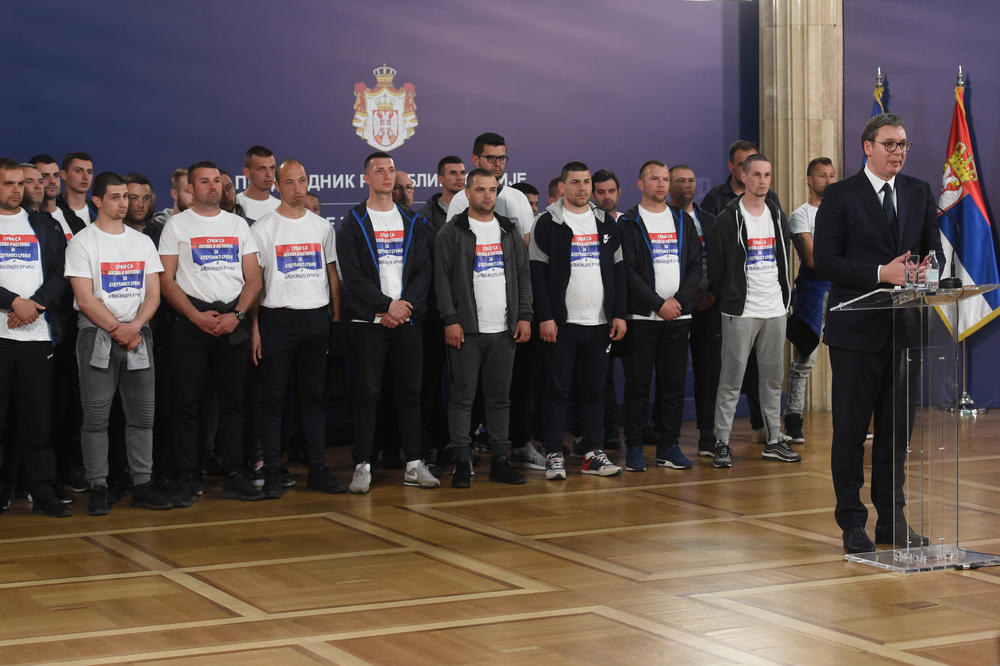 Vučić ih je primio u Predsedništvu, gde su došli sa transparentom, koji su nosili tokom celog puta, s natpisom: "Srbi sa KiM za Srbiju i Vučića".