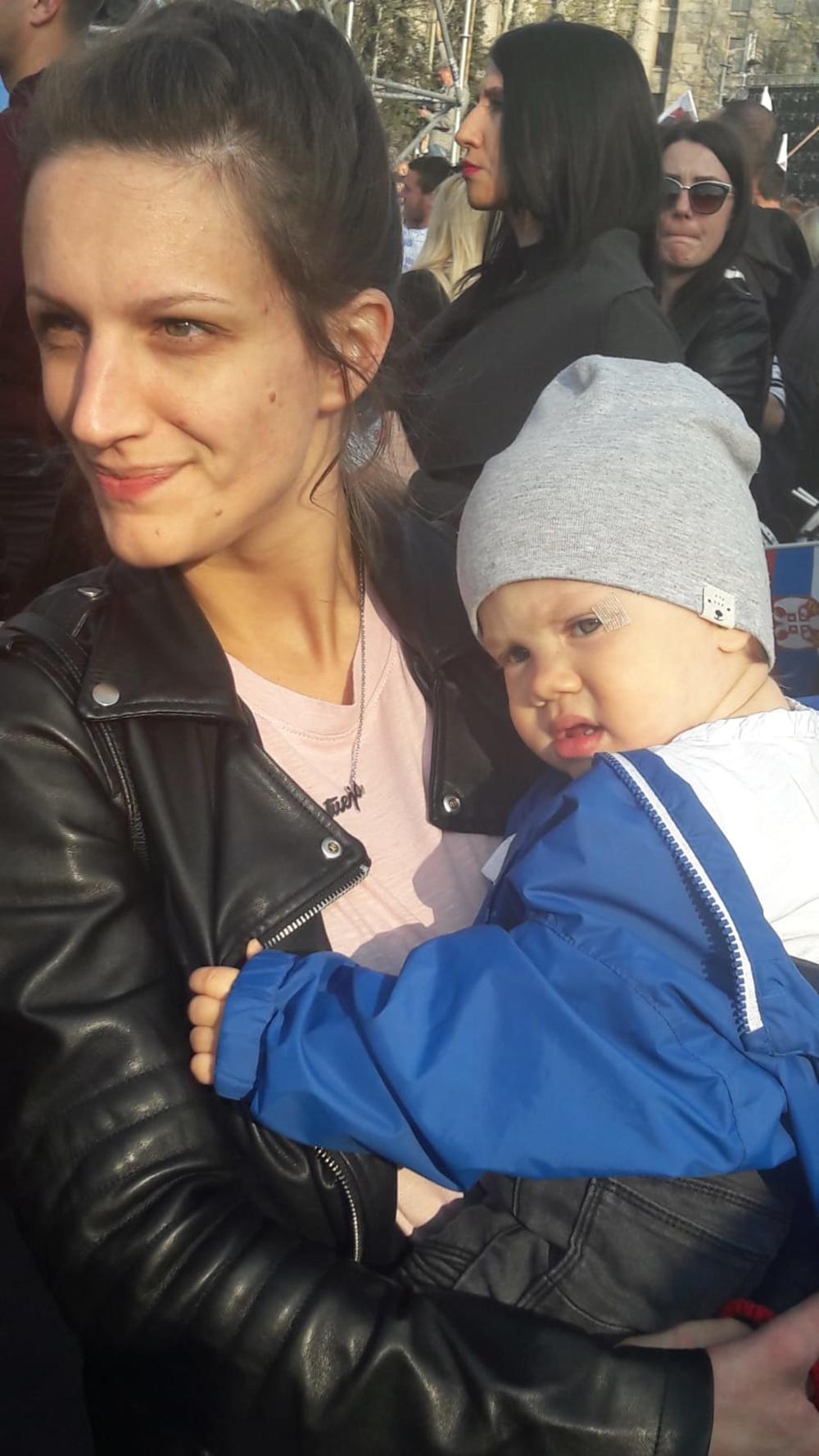 MALI MATEJA JE NAJMLAĐI NA MITINGU BUDUĆNOST SRBIJE: Ima samo 13 meseci, u maminom naručju PRUŽA PODRŠKU VUČIĆA!