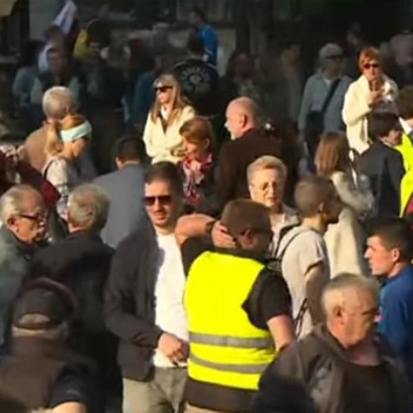 Opozicija koju predvodi vođa desničarske organizacije Boško Obradović, okupila se večeras u centru Beograda, kod Terazijske česme, odakle su prošetali do zgrade RTS.