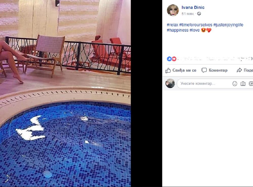 Ona je naime na svom profilu na društvenoj mreži Fejsbuk postavila fotografiju sa bazena i napisala: "odmor" i "samo uživanje".