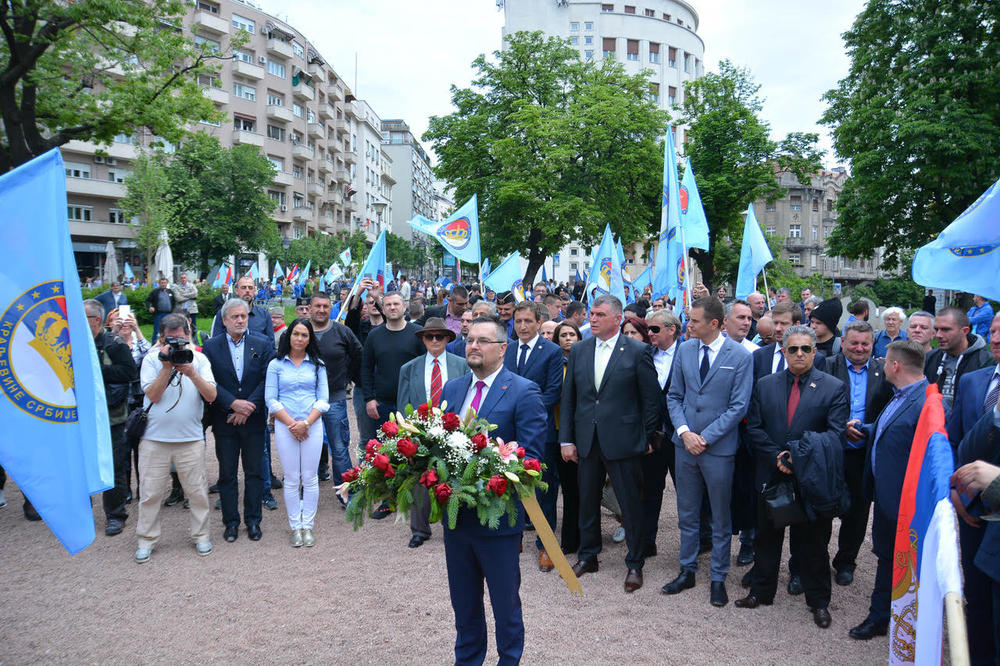 Okupljeni su nosili fotografije Dragoljuba Mihailovića, zastave sa natpisima "sloboda ili smrt" i zastave POKS, a na mestu skupa, u Knez Mihailovoj ulici, kod Delijske česme, bili su postavljeni i panoi koji govore o odlikovanjima koja su predsednik SAD Hari Truman i general Šarl de Gol dodelili Mihailoviću.