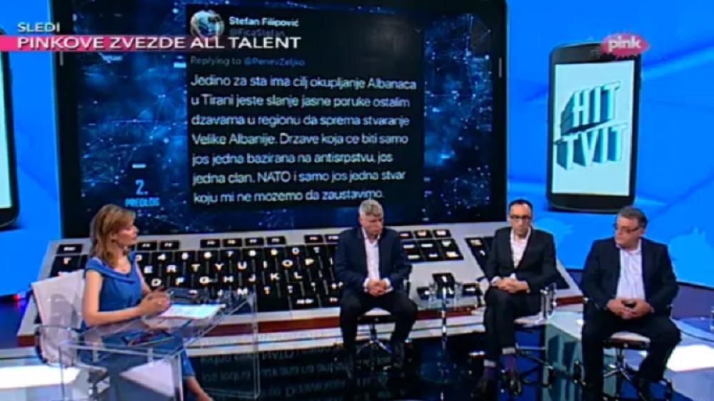 Sinoćnji gosti emisije "Hit tvit" bili su Miroslav Lazanski, vojno-politički komentator "Politike", Nebojša Čović, predsednik Košarkaškog kluba Crvena Zvezda i Branko Klanščak aktivni tviteraš. Oni su, kao i svake nedelje, komentarisali najvažnije objave na tviteru, fejsbuku i jutjubu, a na prvom mestu našao se predlog broj 1 - Dolazak nemačke kompanije "MTU Aeroendžins".