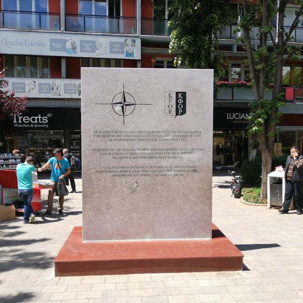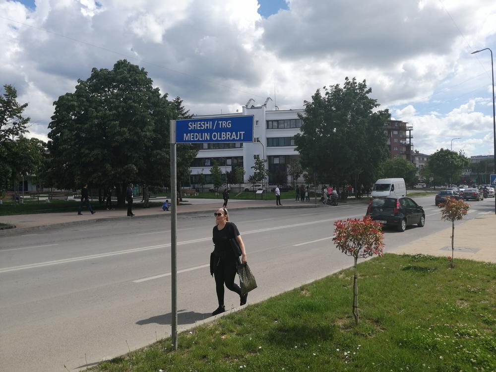 Baš tu zastajemo, preko puta njega je spomenik Rugove, tu snimamo, pričamo na srpskom, dovoljno glasno da nas svi čuju. Ponovo ista scena, niko nas nije ni popreko pogledao.