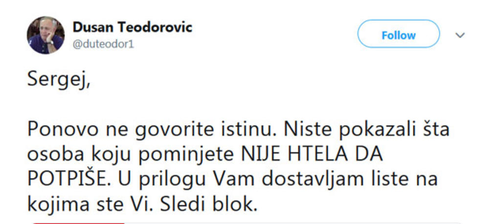 To su posle prozivke Teodorovića, isto su učinili i drugi tviteraši, postavljajući na toj društvenoj mreži sliku lidera PSG sa Panićem.