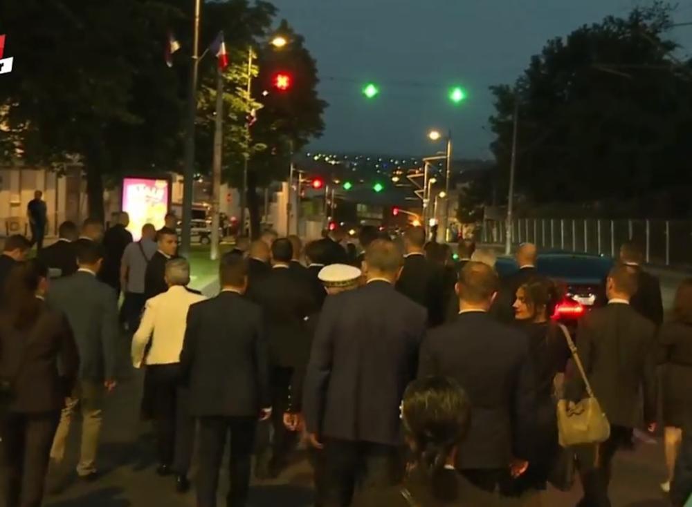 Nakon obraćanja na Kalemegdanu ispred spomenika zahvalnosti Francuskoj, dvojica predsednika Vučić i Makron kroz narod su krenuli ka ambasadi Francuske u Pariskoj ulici.