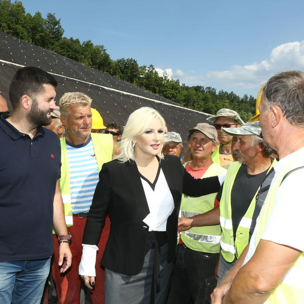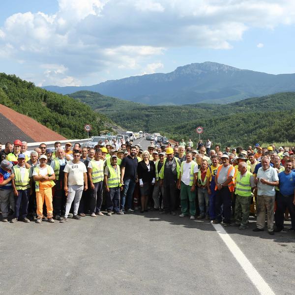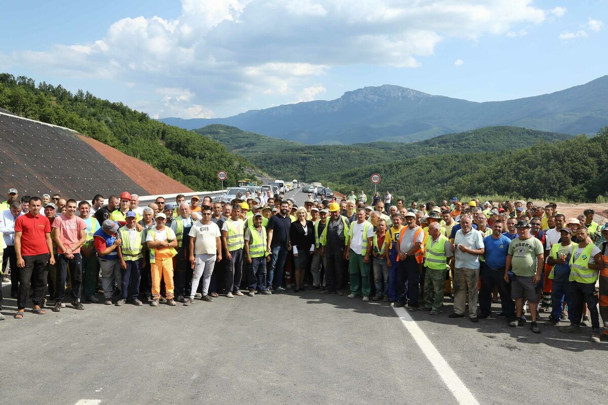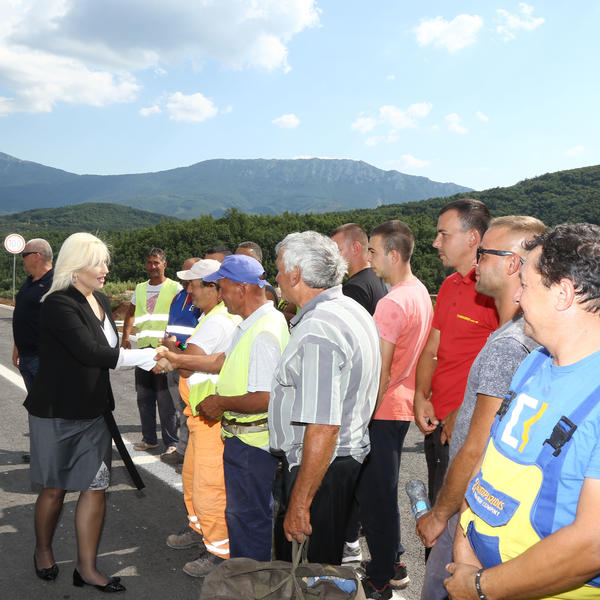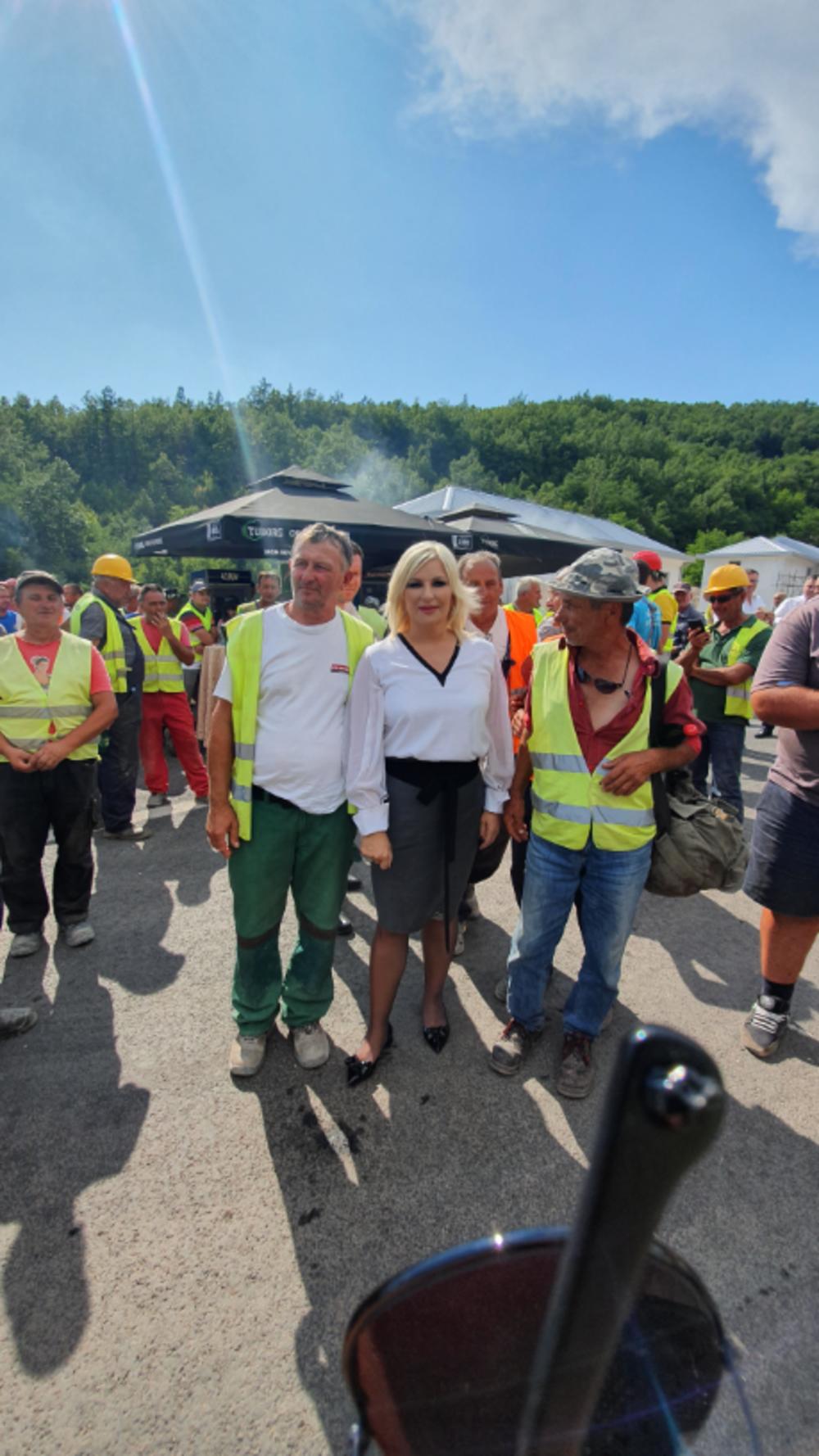Na kraju posete, ministarka Zorana Mihajlović se na trasi autoputa ispred tunela Bancarevo sastala sa više od stotinu radnika koji su došli da je pozdrave.