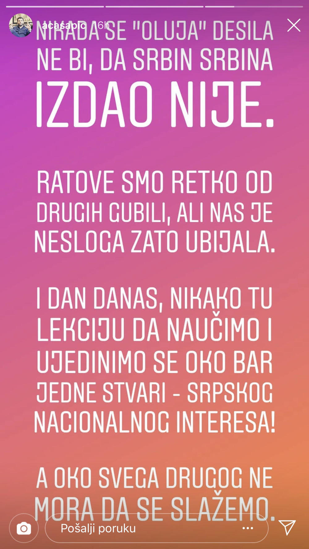 Ipak, povodom sećanja na operaciju Oluja, oglasio se i predsednik opštine Novi Beograd, Aleksandar Šapić koji je kazao da se "Oluja", prema njegovom mišljenju nije ni desila.