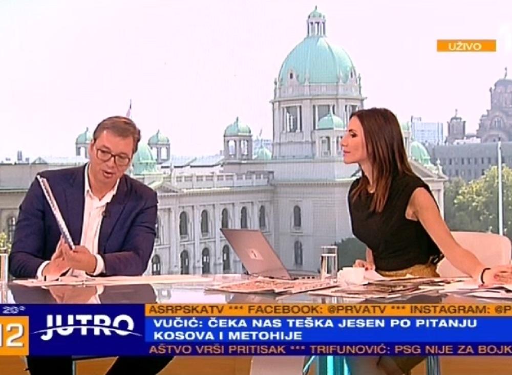 - Kada je reč oko medija, aj da vidimo šta je bilo 2012. godine kada je Đilas držao sve medije. jedina je televizija bila mala KCN televizija na kojoj smo mogli da se pojavimo. Da li je danas N1 televizija koja 24/7 vodi kampanju protiv mene? Ova nova s isto tako, Aldžazira isto. Na vašoj televiziji ide šou kao što je Vojtehovski, Kesić, ja volim to da gledam i samo nastavite. Kada je to bilo u njihovo vreme? Na sve to mi smo spremni da razgovaramo. Oko čega god hoće. $5 do 60 dana je kampanja, svi su apsolutno ravnopravni, ja sam dva puta godišnje na RTS, ostalo seu moje aktivnosti, to ne može da mi niko zabrani - rekao je Vučić i dodao da opozicija zna da ih narod neće već će probati na silu.