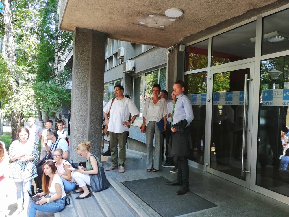 Stigli su za sad Sonja Liht, dekan FPN Dragan Simić i profesor Rade Veljanovski, a stražu na ulazu čuva Simo Spasić. Od opozicije i vlasti još niko nije stigao.