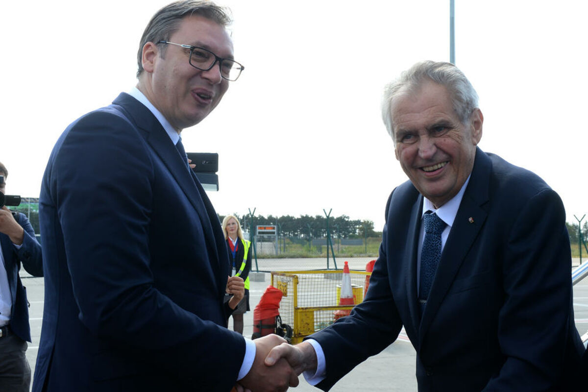 Zeman se prilikom rukovanja zahvalio Vučiću na onom što čini kao predsednik Srbije, na šta se Vučić zahvalio predsedniku Češke što je došao u našu zemlju.