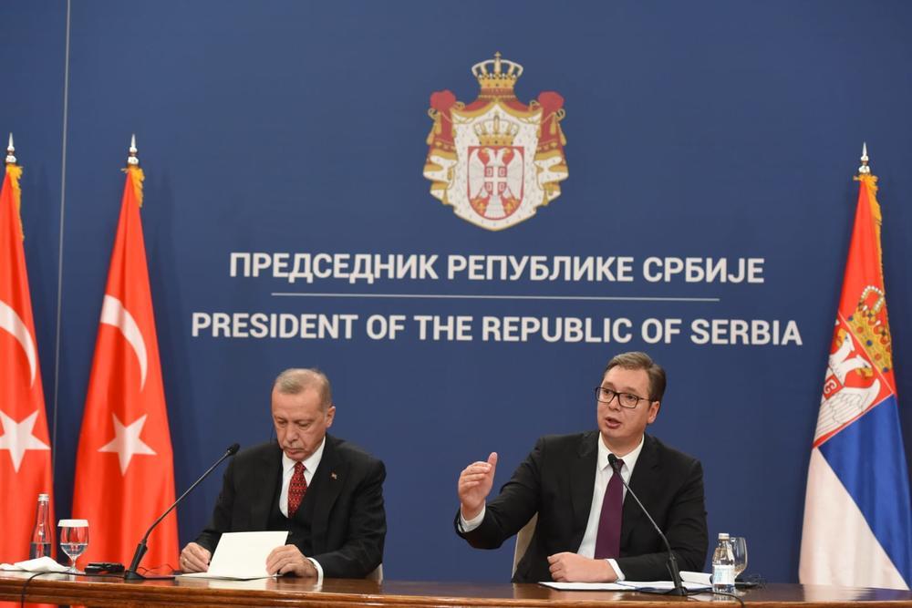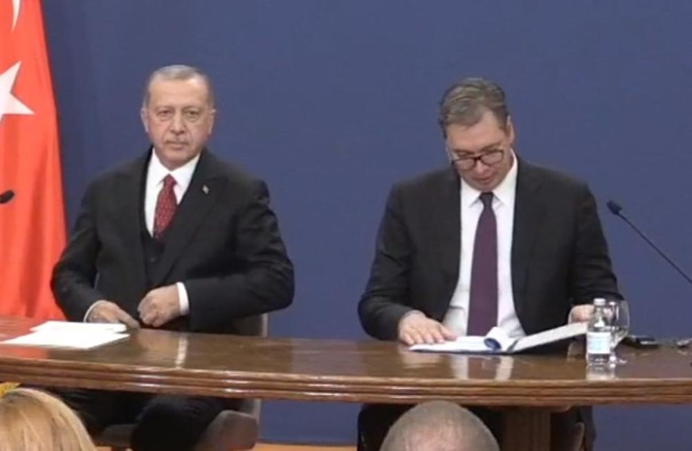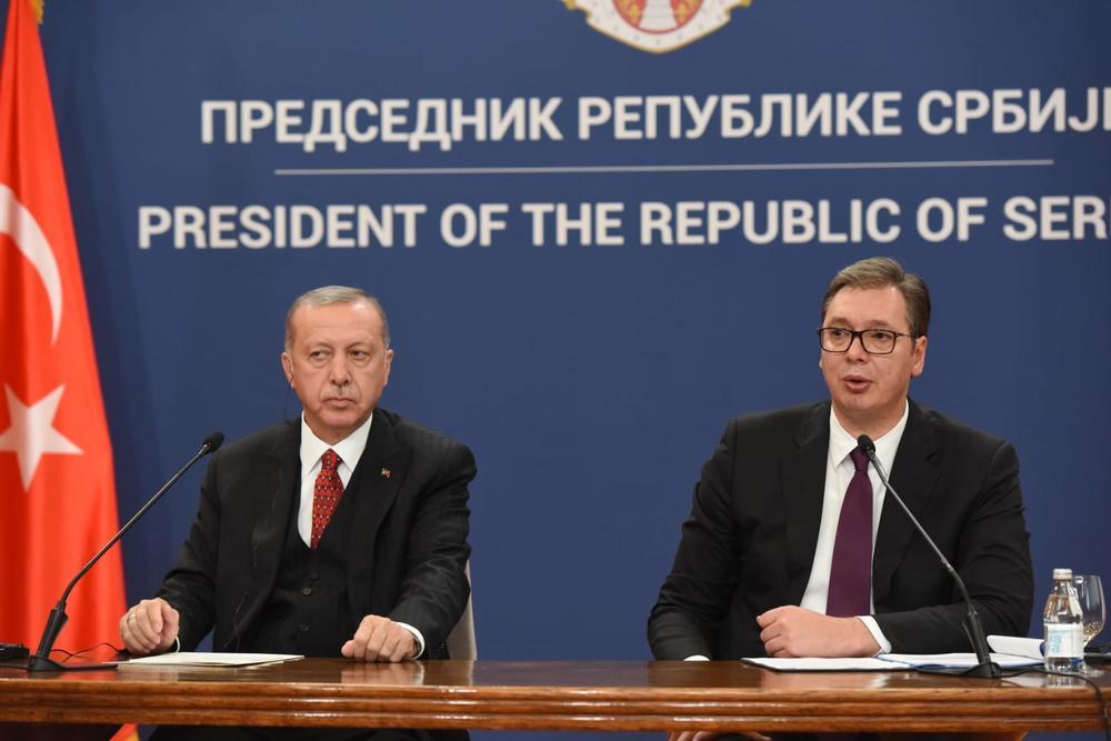 "Imamo čvrste veze sa Srbijom, imamo dosta zajedničkih reči. Ovi zajednički imenitelji mogu da se pronađu u ne toliko zemalja u svetu. Srbija je za nas ključna zemlja za mir na Balkanu", rekao je Erdogan.