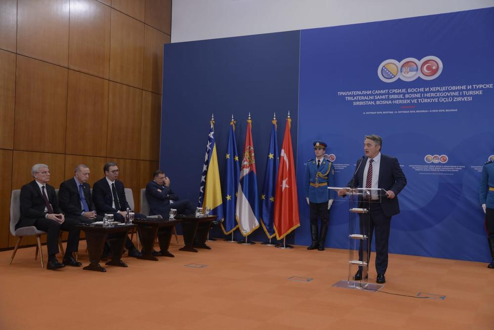 "Odlučni smo da nastavimo trilateralni mehanizam. Kada je reč o Srbiji i BiH, građanima, to će zbližiti i ljude i dve zemlje. A, najvažnija poenta današnjeg sastanka je ta što se, pre svega, razmišlja o celom regionu", rekao je Erdogan na zajedničkoj pres konferenciji nakon trilateralnog sastanka.