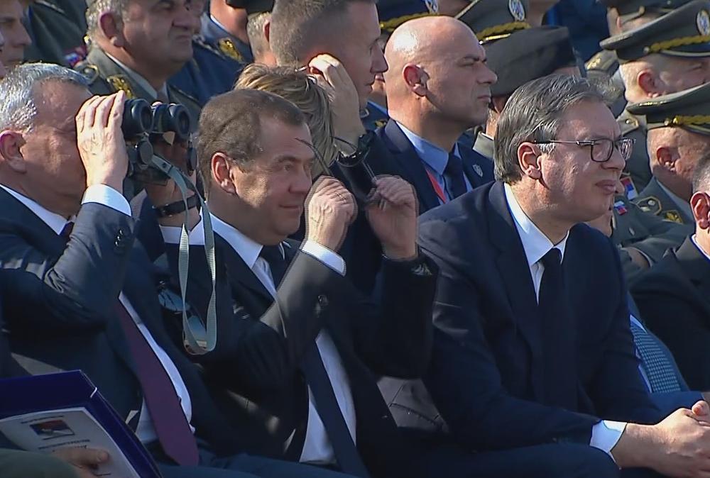 "Umećemo sami da sačuvamo svoje nebo, svoje zemlju i svoje ljude. Živela slobodna i nezavisna Srbija", poručio je predsednik Vučić.